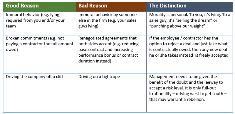 And yes, some answers to that would be bad. Selfish reasons for rebelling. Backroom intrigues. Lack of support. But I’d at least be curious. Wouldn’t you? And maybe I’d hire that rebel after all.